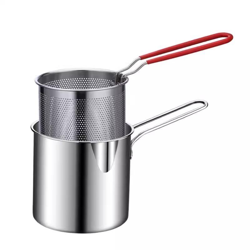 1200ml Small Stainless Steel Deep Fryer Pot with Long Handle & Strainer Basket Oil Saving for Induction Cooker Gas Stove Home