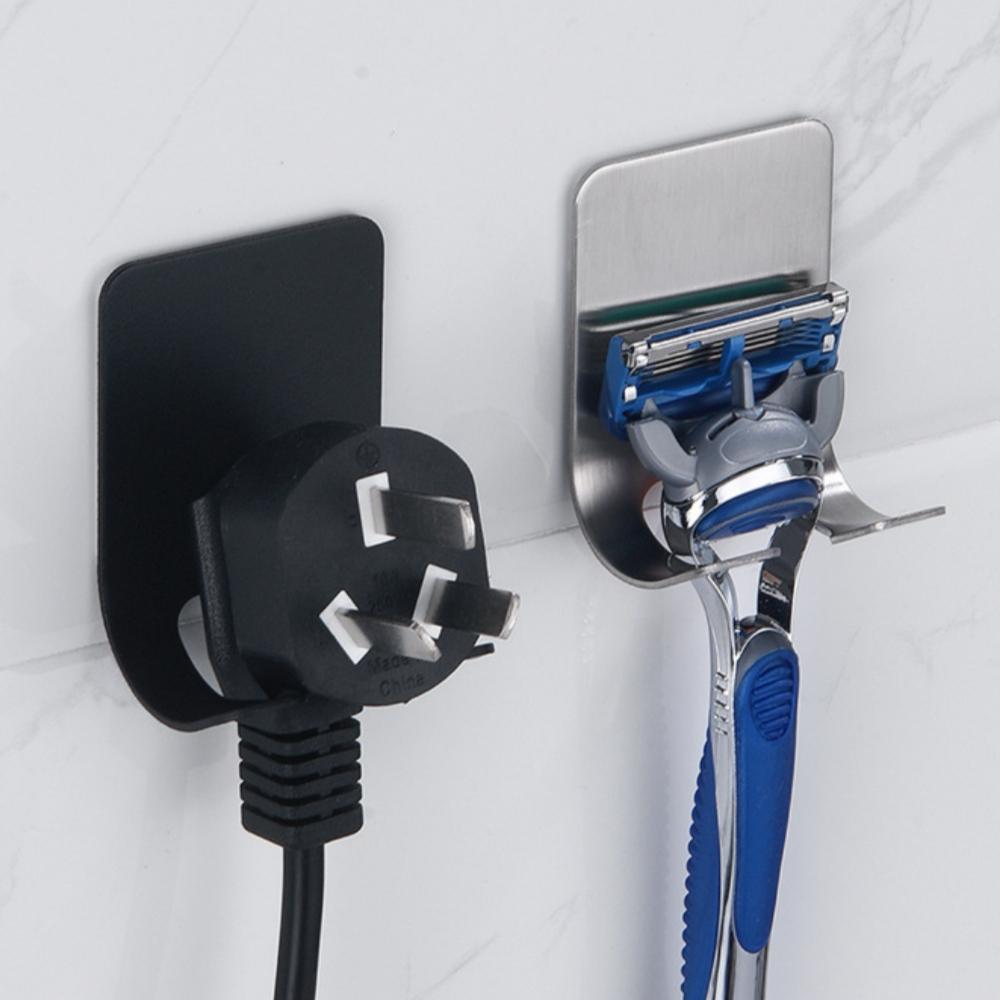 2pcs No-hole drilling hook stainless steel hat rack razor holder kitchen and bathroom plug-in hook minimalist single-hook razor