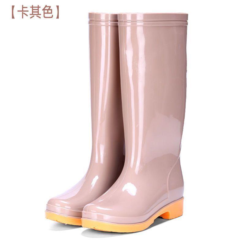 High tube rain shoes women's fashion outer wear non-slip and anti-platform rubber shoes adult long velvet soft-soled rain boots