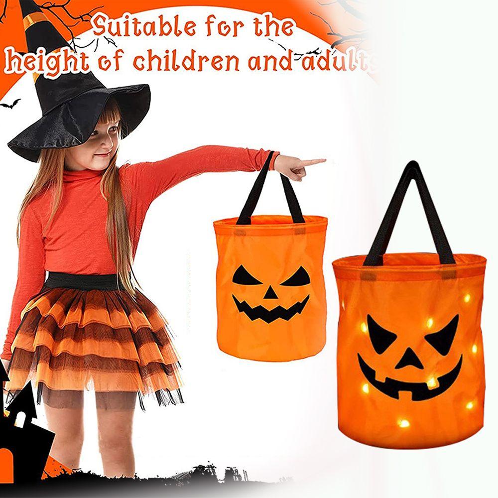 Grimace Party Pocket Trick or Treat LED Light Pumpkin Tote Bag Halloween Candy Bags Ghost Festival