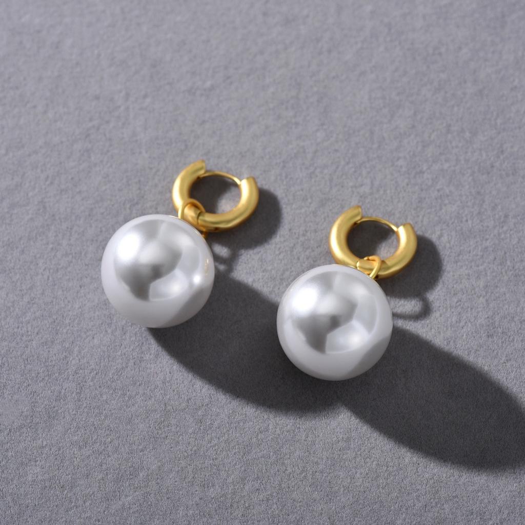 Classic Large Pearl Earrings For Women, Simple And Exaggerated Personality Fashion Ear Buckle Copper-Plated 18K Real Gold Earrings For Women