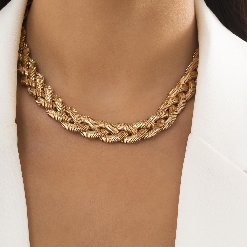 Punk Style Metal Texture Snake Bone Chain Woven Necklace, Fashionable Cool Geometric Collarbone Necklace Women