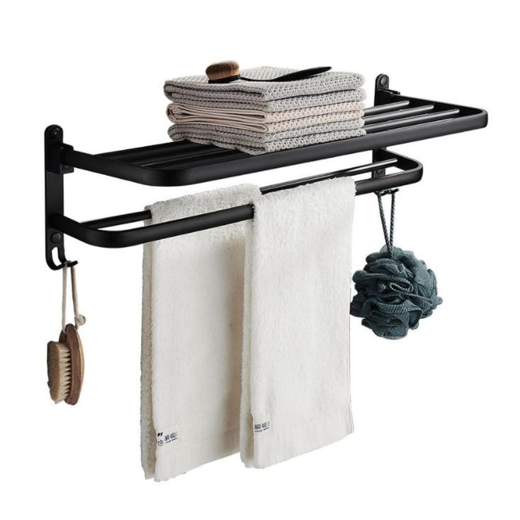 Solvanta Folding Towel with No Drilling Screw Aluminum Bath Towel Towel Suitable for and 39 x 23 x Black Wall-Mounted Rack, Two-Tier, Hooks,