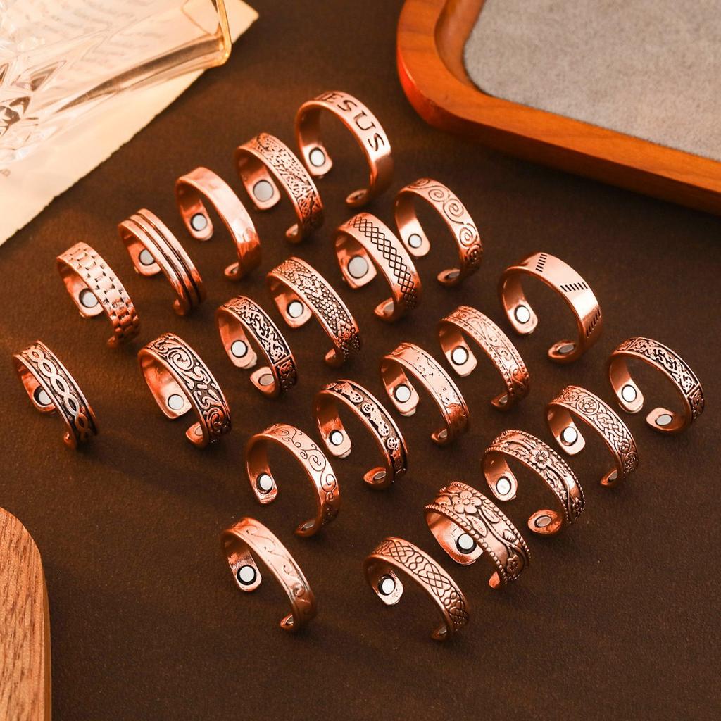 Miedziany Magnes Retro Pierścionek Modowy Atmosferyczny Wysoki Smak Wygrawerowany Wzór Totem Otwierany Pierścionek