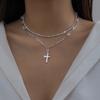 Wind Sparkling Chain Clavicle Necklace Women'S, Simple Diamond Cross Double Necklace