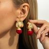 Retro Słodki i Fajny Styl Metalowe Czerwone Kolczyki Sztyfty z Kokardką Damskie, Czucie Designu Trójwymiarowy Kwiat Drip Oil Długie Kolczyki