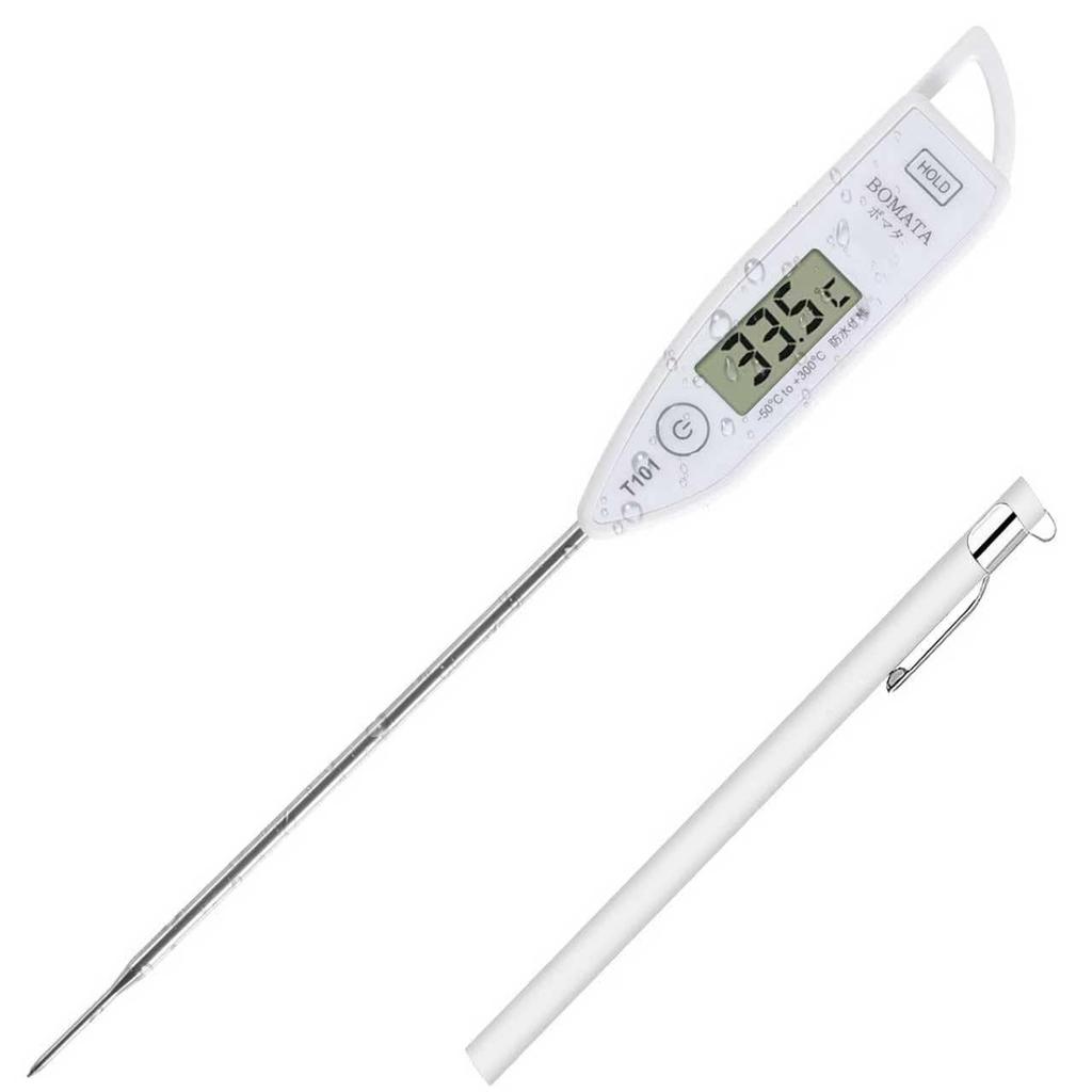 BOMATA Wodoodporny Termometr Kuchenny Drugi Odczyt IPX6 Stal Nierdzewna 304 Duży Wyświetlacz LCD Montaż na Ścianie Wygodny do Pomiaru i Biały Szybko Odczytujący, 3-6