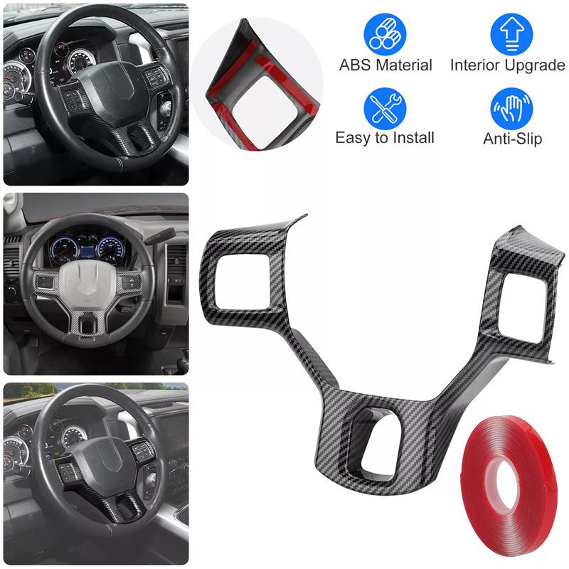 For Dodge Ram 1500 2500 2011-2018 Abs Carbon Fiber Style Inner Sticker Car Interior Steering Wheel Cover Trim Frame Decotation