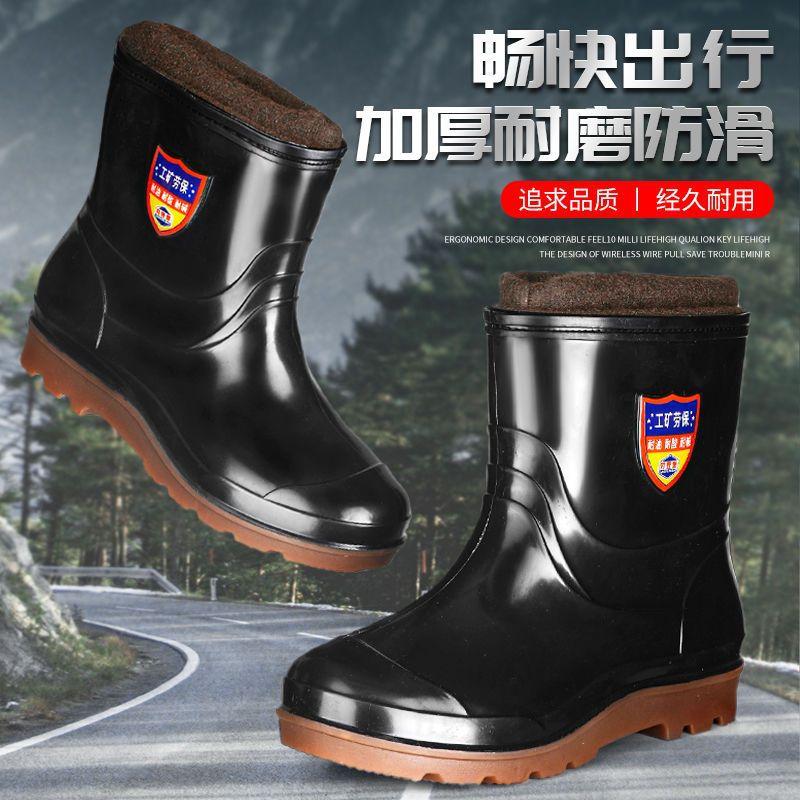 Fixed fleece rain shoes men's wear-resistant work anti-short overshoes low-top non-slip plastic warm beef tendon sole
