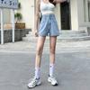 Wygodne Obcisłe Modne i Wszechstronne Białe Jeansowe Szorty z Bardzo Wysokim Stanem Damskie Letnie Podwójna Klamra Podwinięty Brzeg Luźne Szerokie Nogawki Spodnie o Kroju A