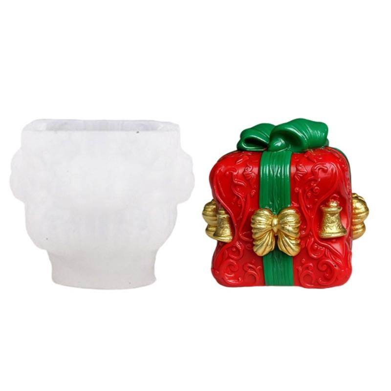 Celebrates the Christmas festival with this Christmas bells gift box shape silicone candle mold, crafted from food grade and heat resistant silicone for safe and effortless scented candle making, soap crafting, or festival chocolate molds.