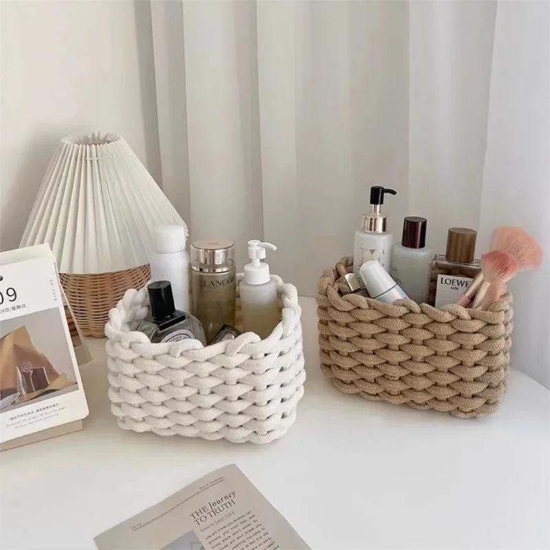 Nordic Style Handmade Cotton Rope Woven Storage Basket Sundries Clothing Cosmetic Organizer Book Toy Desktop Storages