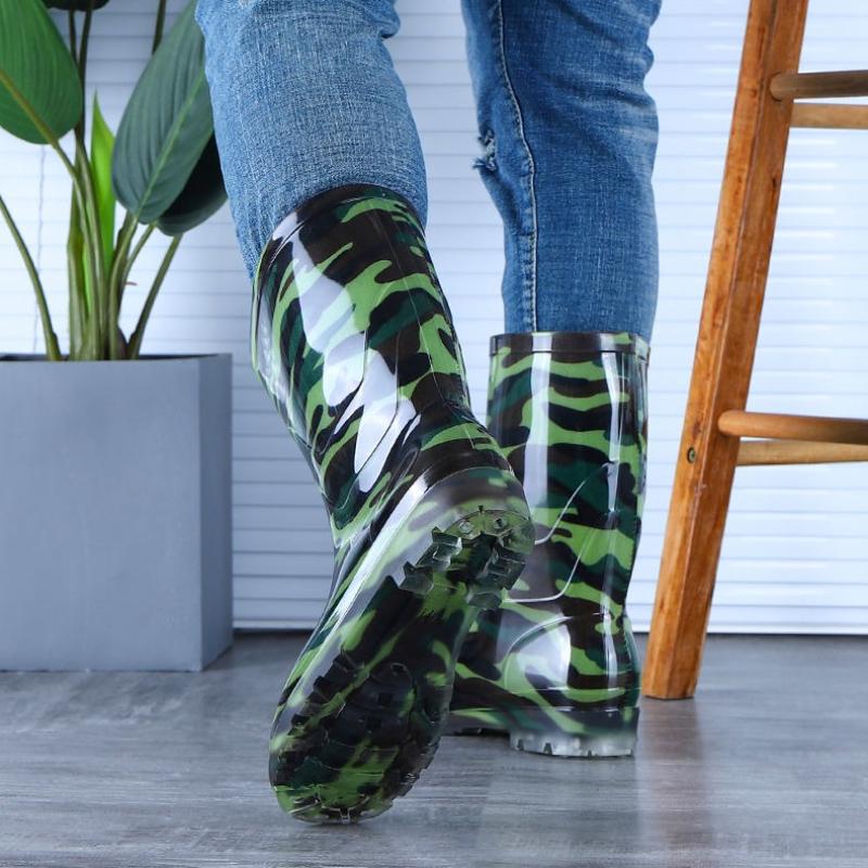 Farming Autumn Winter Print Men's Rain Boots Camo Plastic Fishing High Quality Outdoor On Offer Water Garden Gumboots Male Shoes