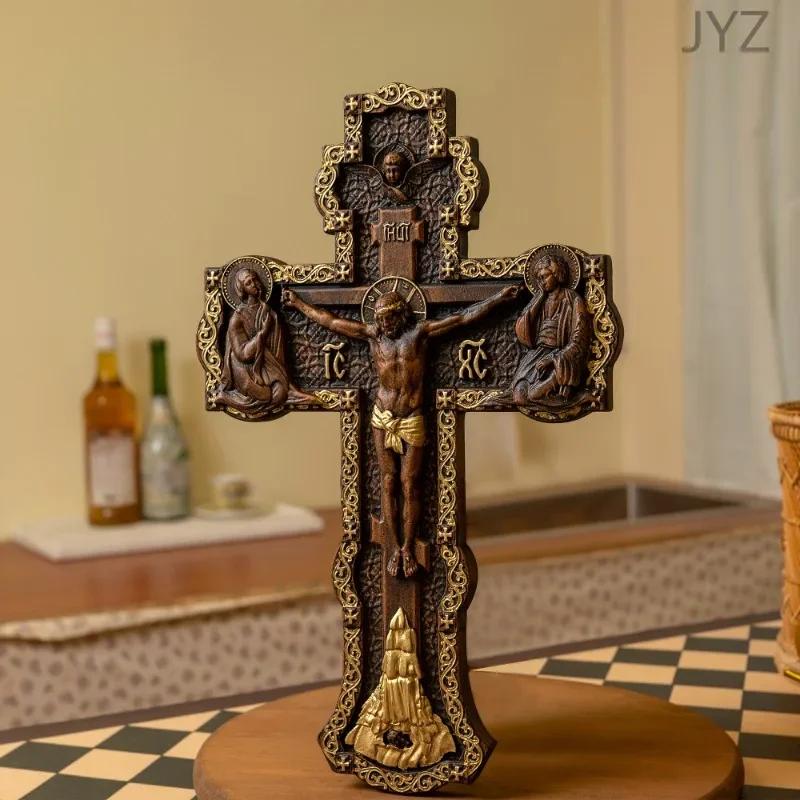 Święta Rzeźba Drewniane Rękodzieło Zaopatrzenie Kościoła Prawosławnego do Sztuki Ściennej Wisząca na Ścianie Krucyfiks Statua Madonny