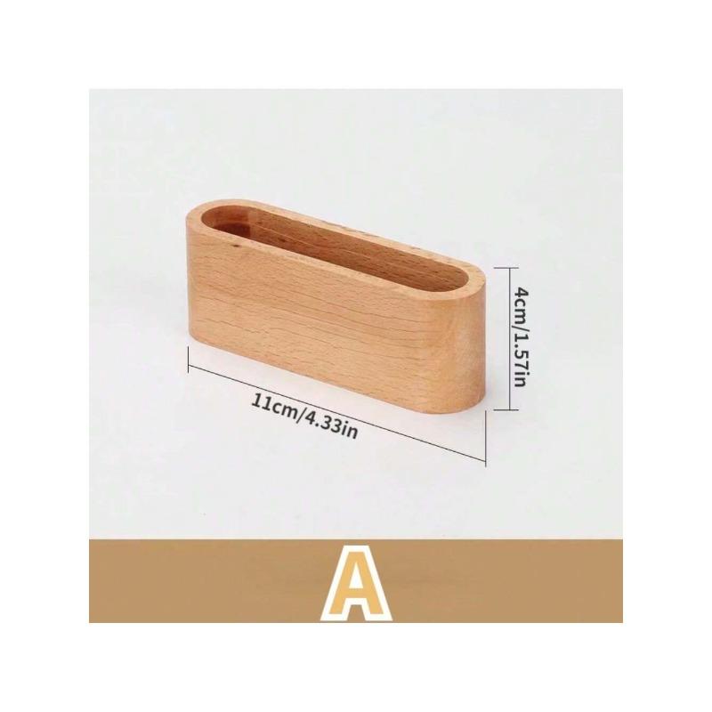 Wooden Business Card Holder with Pen Slot Desktop Display Stand Memo Note Holder and Storage Organizer Office Desk Accessory