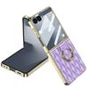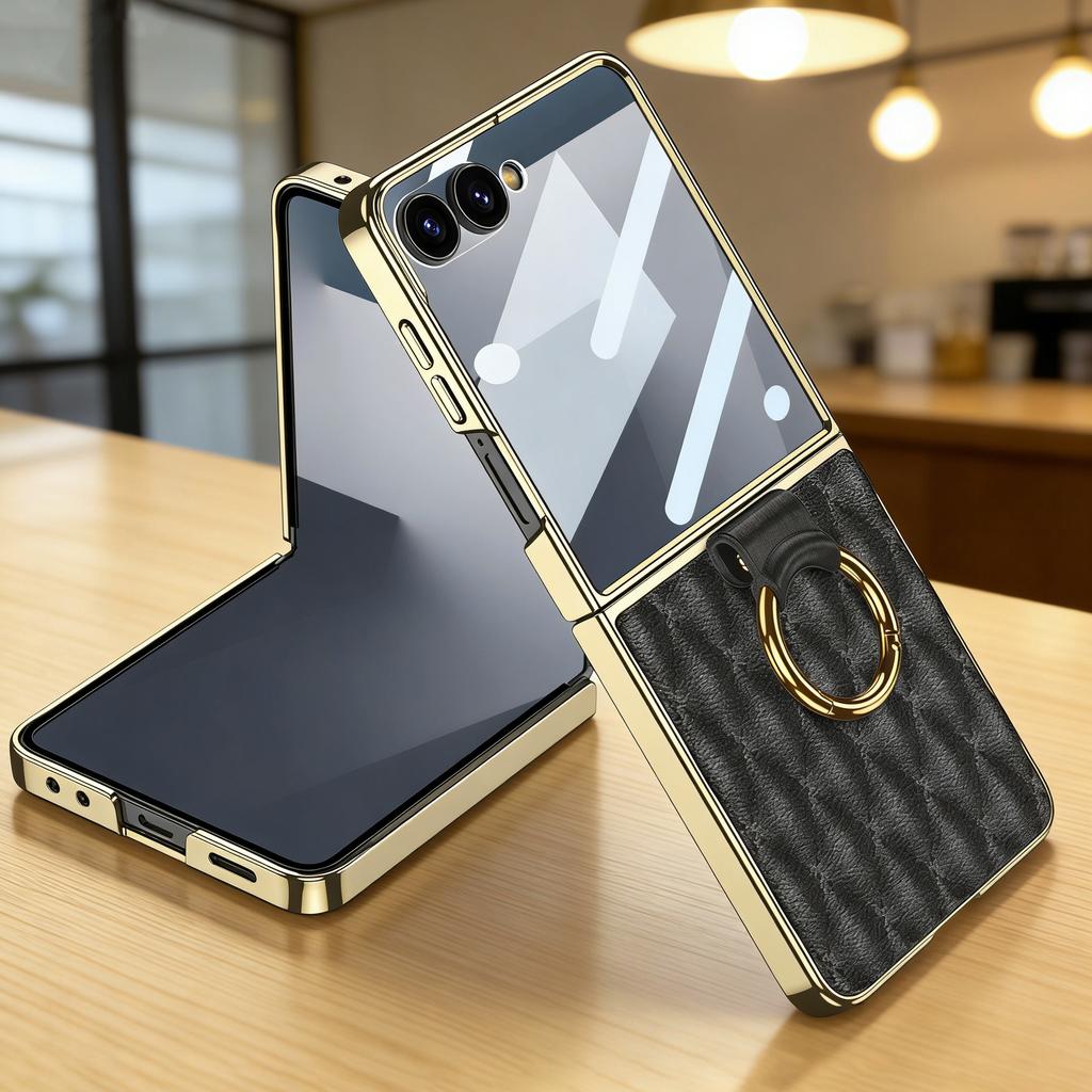Luxury Diamond Leather Ring Holder Case for Samsung Galaxy Z Flip 7 6 5 Screen Glass Plating Edge Cover for Galaxy Z Flip7 Case