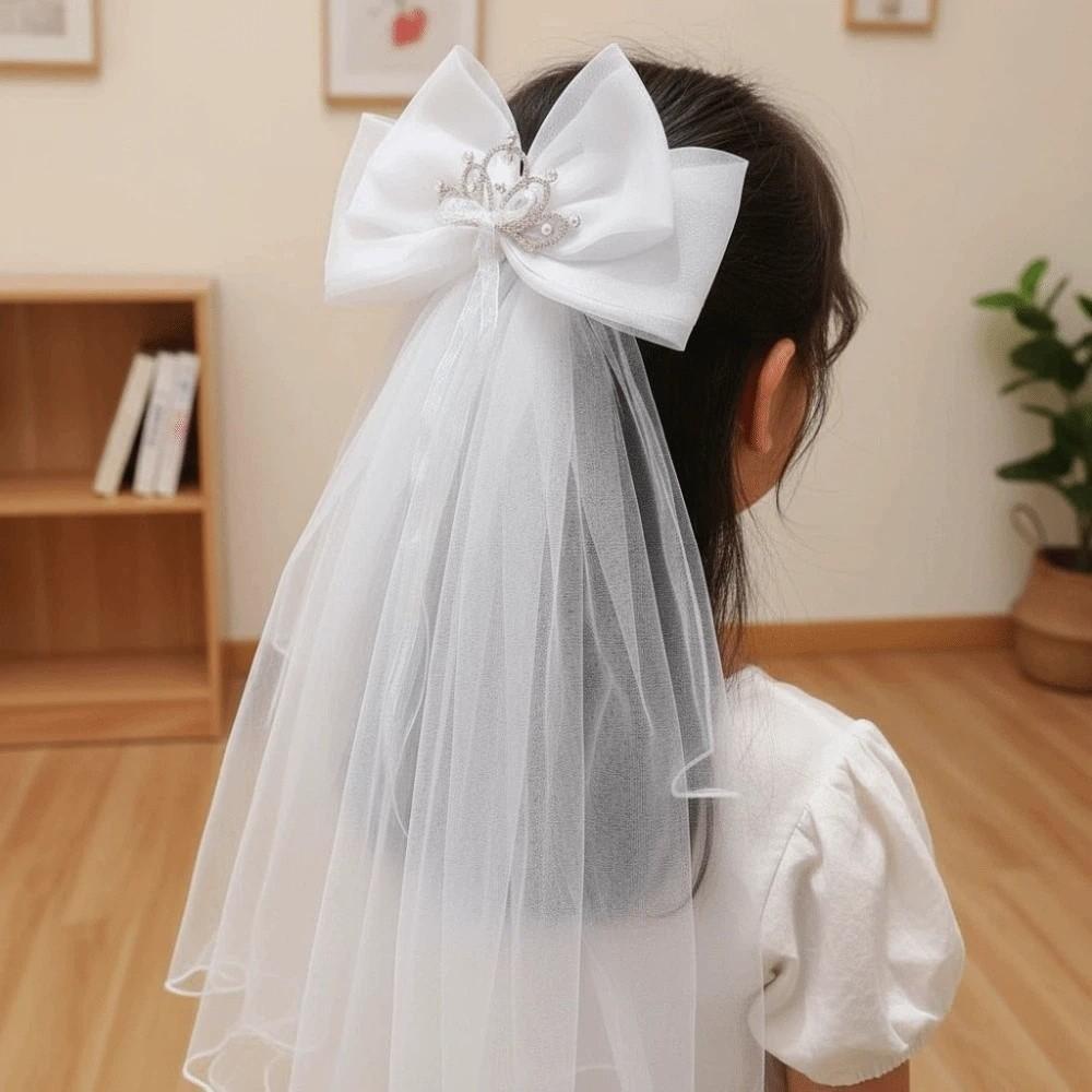 Bow Girls Head Gauze White Bridal Tulle Gift Veil Hair Clip Photo Props