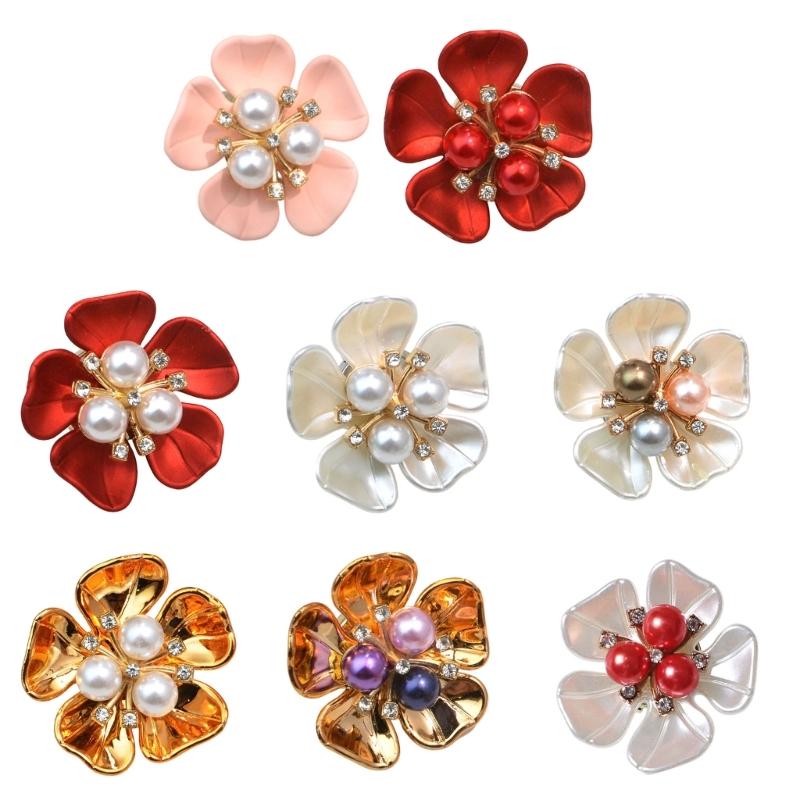 Wykonany z plastiku, każdy klips do guzików koszulowych prezentuje wyrafinowany kształt kwiatu wysadzany błyszczącymi cyrkoniami i realistycznymi perłami, oferując bezpieczne, a jednocześnie stylowe ulepszenie standardowych guzików koszulowych.