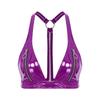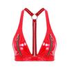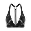 Womens Patent Leather Bralette O-Ring Y Back Zipper Front No Pad Cup Crop Top Clubwear Disco Top