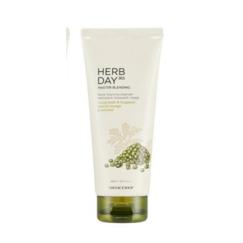 THE FACE SHOP, Herb Day 365 Cleansing Foam, mung bean cleanser, mugwort cleanser, Korean foam cleanser, herbal face wash, oil control cleanser, soothing facial cleanser, daily cleansing foam