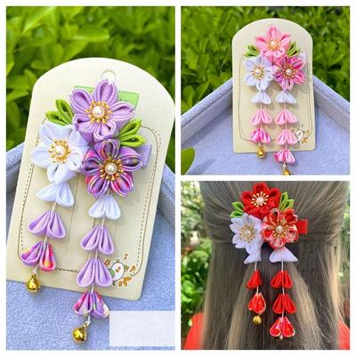 Japońskie Kimono Nakrycie Głowy Starożytny Styl Ręcznie Robiony Kwiatowy Klips do Włosów Tkanina Słodki Chwostek Kwiatowa Spinka do Włosów