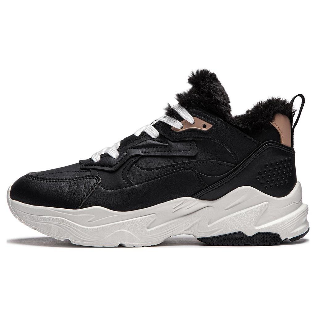 Li Ning Defender Slip Resistant Abrasion Resistant Thermal Mid top Running Shoes Women's Black White AGLT128-1