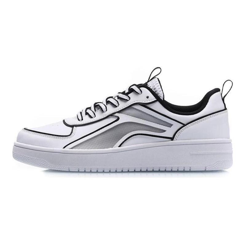Li Ning Synthetic Leather Slip Resistant Abrasion Resistant Low top Skateboard Shoes Women's White Black AGCP128-3