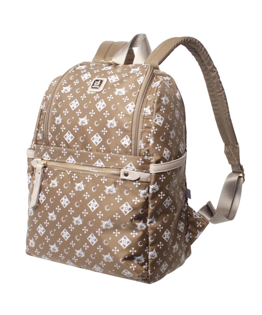 WACHIFIELD T2O Designed and Manufactured RucksackDaypack for Women, Monogram Print, Stylish Cat Print, Dayan the Cat WTSK-05, OakGold