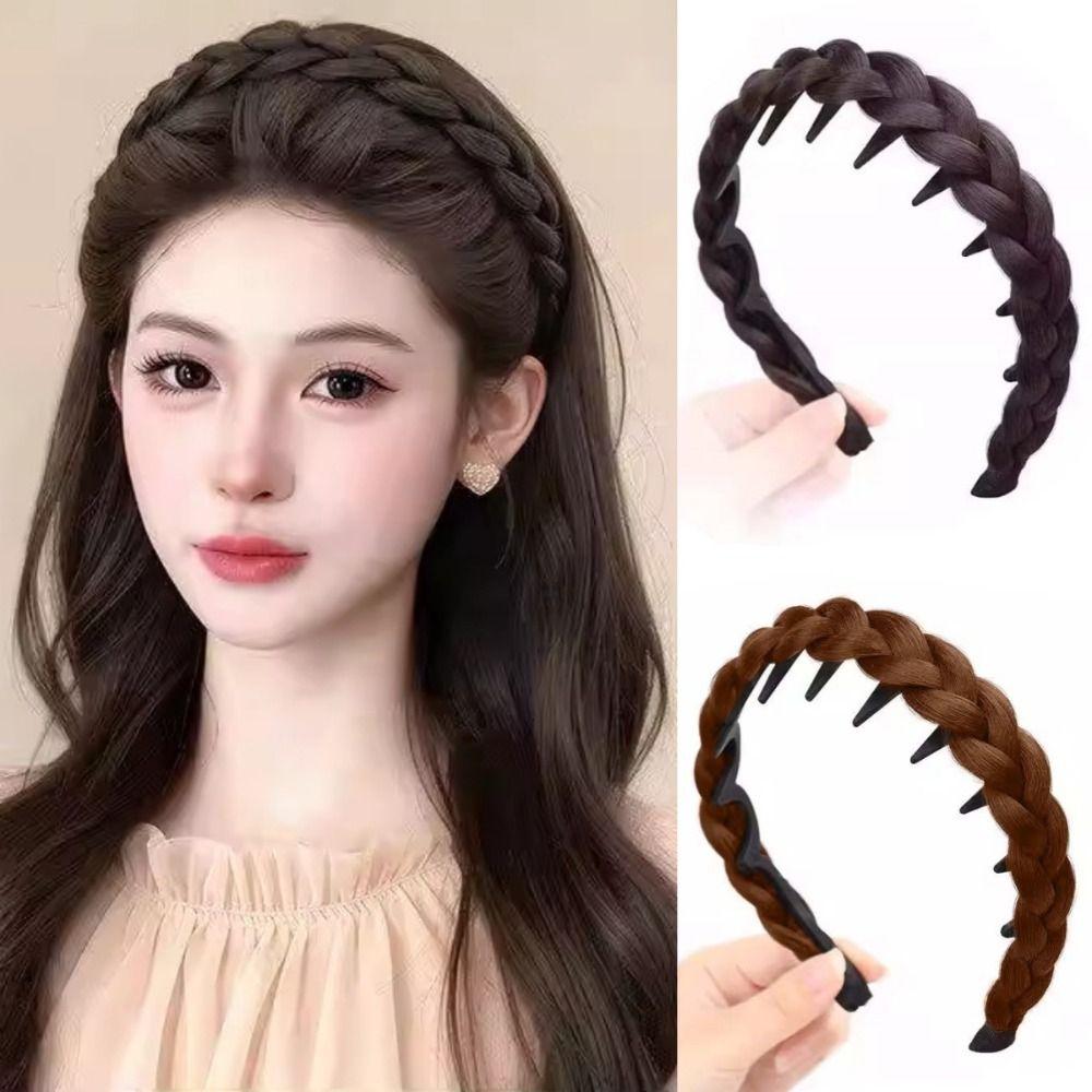 Non-Slip Braided Headband Wig Headwear Retro Head Hoop Fishbone Braids Hair Bands for Women