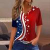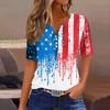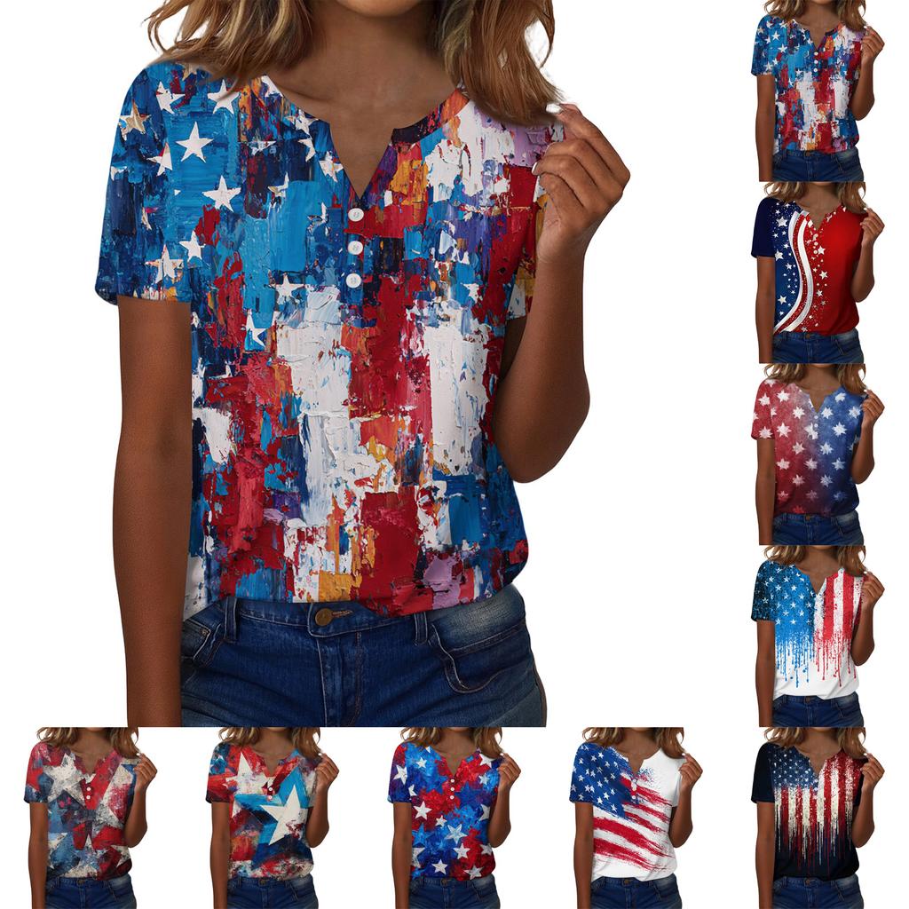 Women's T Shirt Independence Day Print Button Short Sleeve Daily Weekend Fashion Basic V- Neck Regular Top