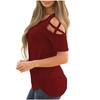 Koszulki damskie Wiosna Lato Krzyż Pasek Odkryte Ramię Krótki Rękaw Okrągły Dekolt Dopasowany Dopasowany T-shirty Damskie
