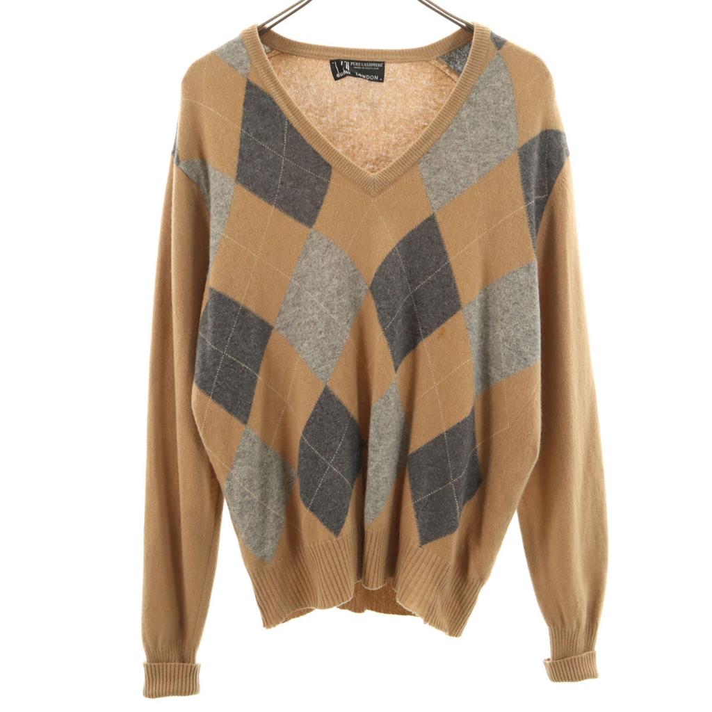 Dunhill Made in Scotland 100% cashmere Argyle Pattern Long sleeve V neck sweater Men's Used