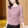 Mesh Long-sleeved T-shirt for Women in Autumn New Fashion Slim Shirt Waist Lace Top