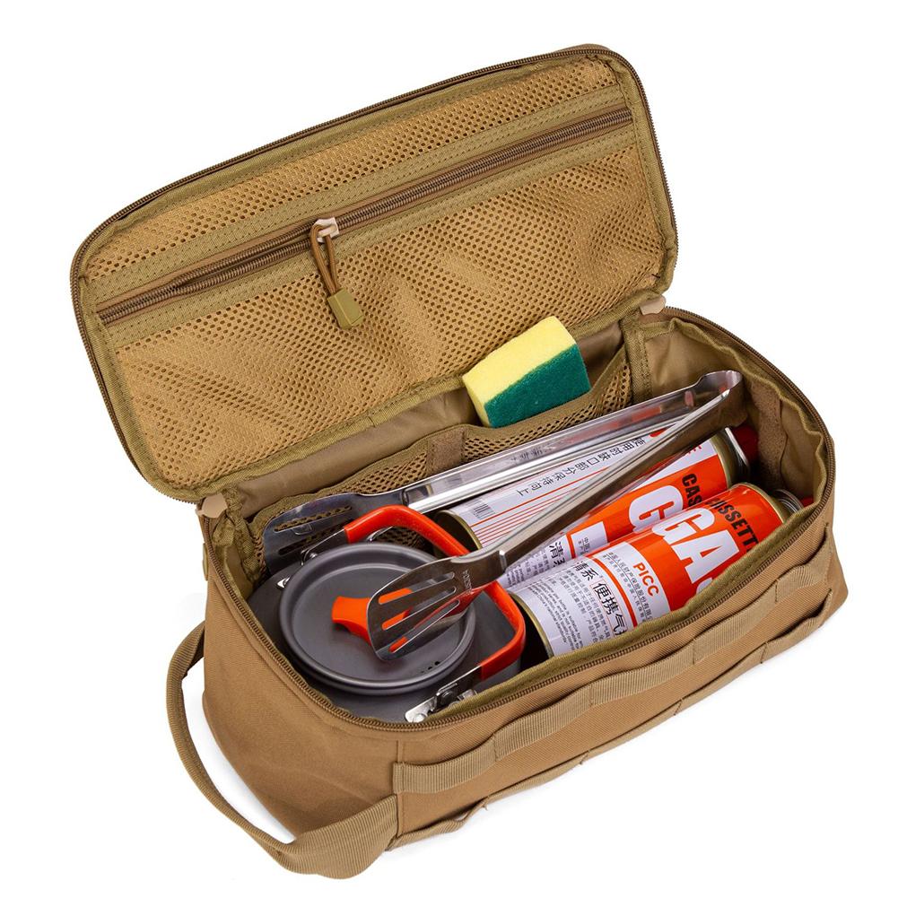 Large Capacity Tactical Camping Storage Bag with Handle Camping Cookware Organizer Double Zippers for Camping Hiking Travel