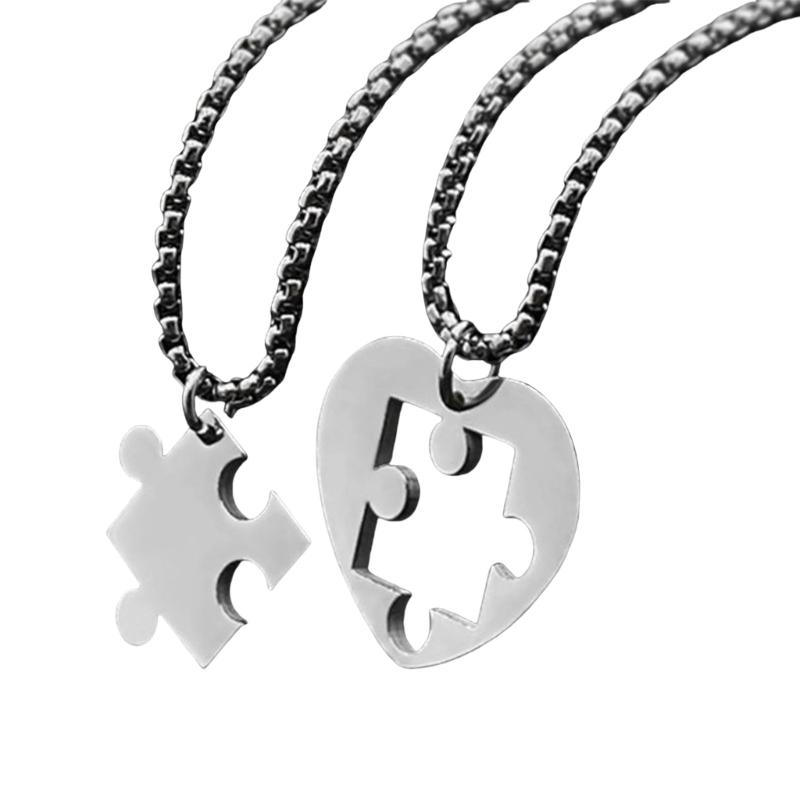 Heart Puzzle Pieces Couple Necklaces Sturdy Steel Heart Puzzle Pendant Necklaces Accessory for Couples Romance Gift