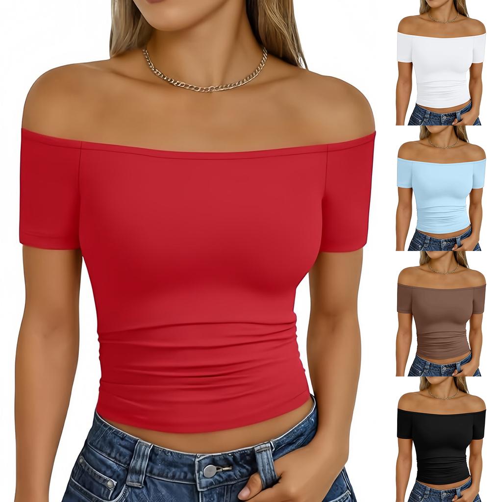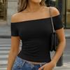 Damska Kolorowa Koszulka Modna I Seksowna Jedno ramię Z Odkrytymi Ramionami Krótki Rękaw Dopasowany Top