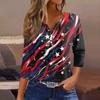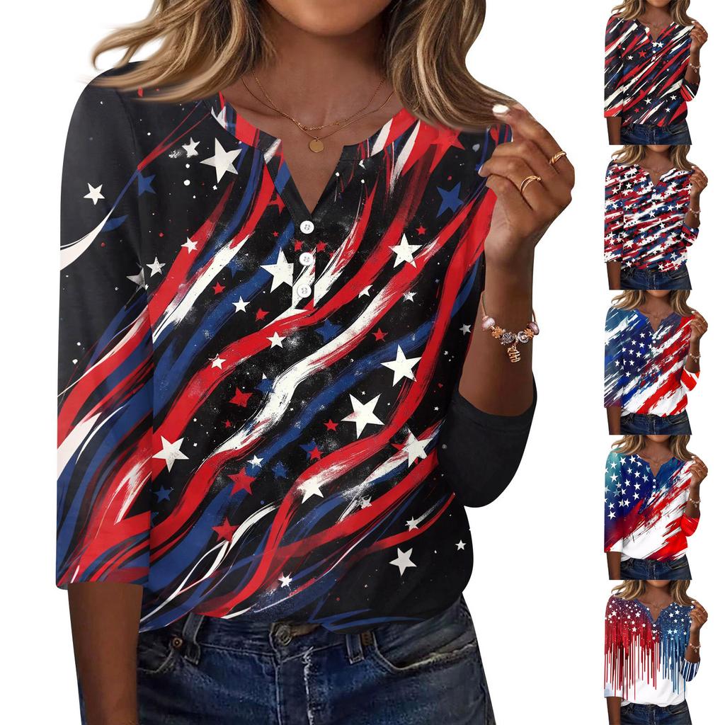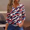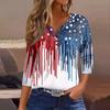 Damska Koszulka Dzień Niepodległości Nadruk Guziki Rękaw 3/4 Codzienna Weekendowa Modna Podstawa Dekolt V Regularny Top