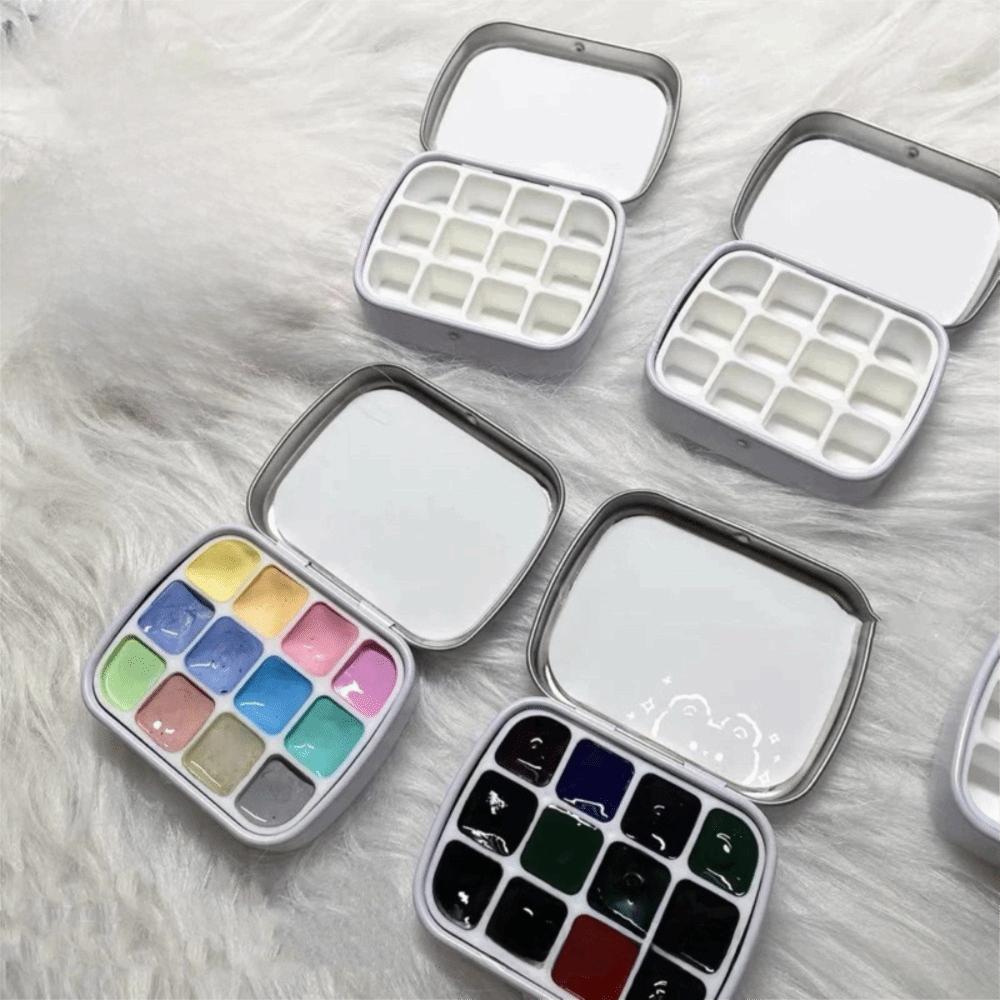 3. Przenośna i praktyczna. Nasza pusta paleta akwarelowa z pokrywką jest bardzo kompaktowa i w połączeniu z kwadratowym kształtem umożliwia łatwe spakowanie jej do torby lub walizki.. 12/24 otworów i wystarczająca pojemność, aby przechowywać wszystkie najczęściej używane kolory. Ponadto powłoka naszej palety gwaszowej z blachy stalowej jest gładka, łatwa do czyszczenia i odporna na korozję, co ułatwia mieszanie i dostosowywanie różnych kolorów.