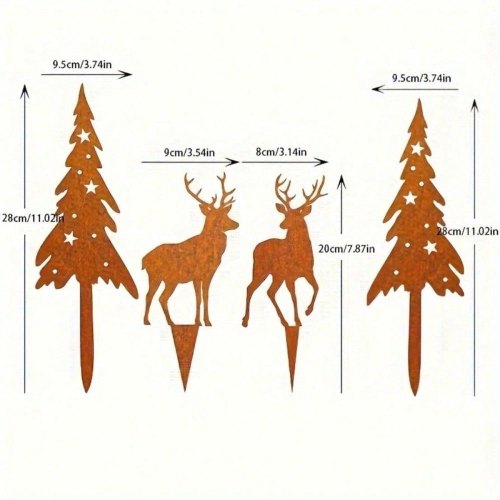4 Pack Rustic Iron Deer Forest Art, Large Tree Sculpture Garden Decor for Lawn Yard Outdoor Indoor