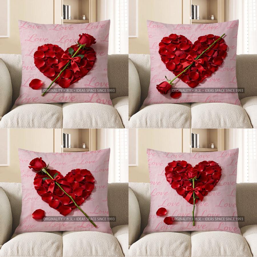 Home Decor Rose Heart Love Pattern Throw Pillow Pattern Cushion Cover Suitable For Sofa Bedroom Car Pillow Cover