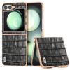 ABEEL For Samsung Galaxy Z Flip7 FE 5G/Z Flip6 5G Case Electroplating Phone Cover Crocodile Texture Genuine Cow Leather+TPU Protective Case