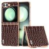 ABEEL For Samsung Galaxy Z Flip7 FE 5G/Z Flip6 5G Case Electroplating Edge Crocodile Texture Genuine Cow Leather Back Cover