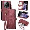 Etui portfel na zamek błyskawiczny ze skóry z geometrycznymi liniami na Xiaomi Redmi Note 14 Pro 5G/Poco X7 5G