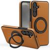 For Samsung Galaxy S25+ Case with Ring Kickstand Magnetic Case PU Leather Back Cover