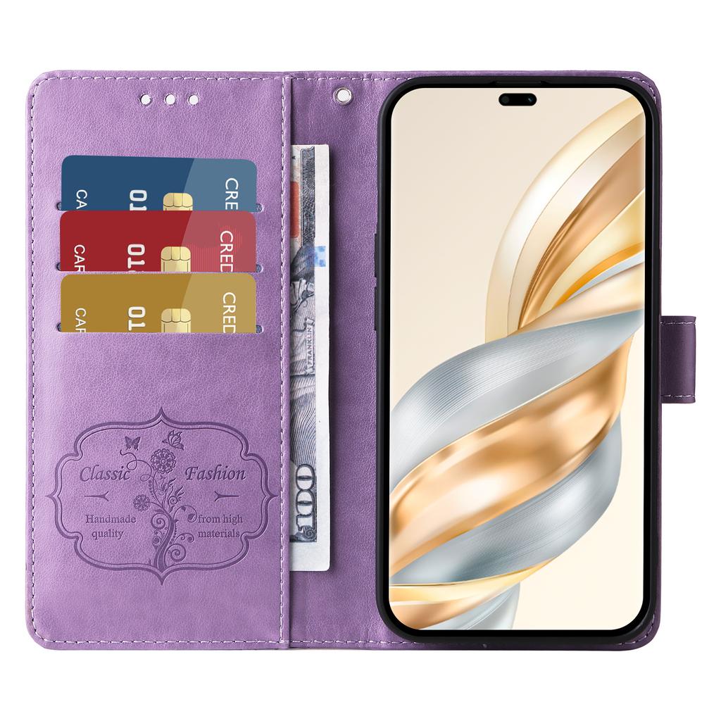 Skórzane etui na telefon dla Honor Magic7 Lite 5G/X9c 5G/X60 Pro 5G z nadrukiem motyla i kwiatów, portfel, etui ze stojakiem