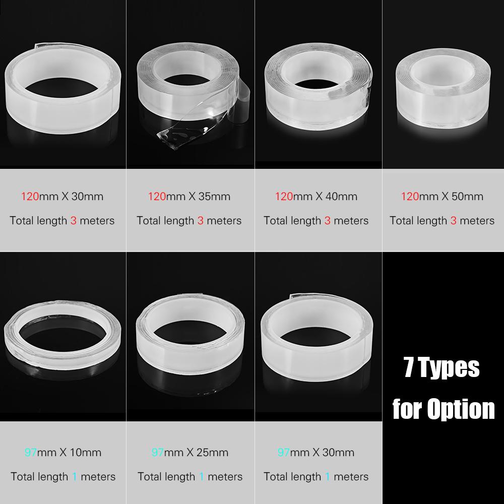 1m/3.3ft Washable Traceless Double-sided Adhesive Tape Removable Reusable Anti-slip Transparent Nano Gel Tape Pad 2mm Thickness