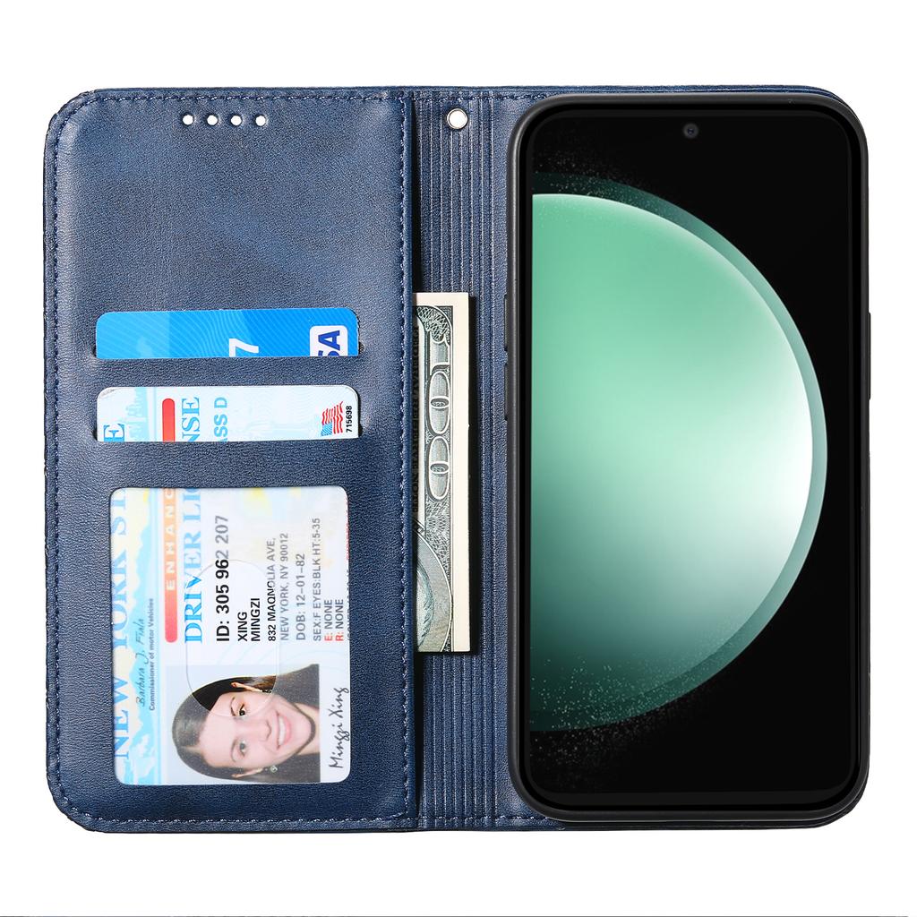 Etui portfelowe dla Samsunga Galaxy S24 FE, tekstura cielęca, skóra PU, pokrowiec na telefon ze smyczą