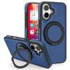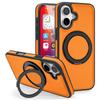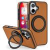 Etui do iPhone'a 16 z pierścieniem i podstawką, kompatybilne z MagSafe, tył z skóry PU