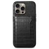 For iPhone 16 Pro Max Case Card Holder Kickstand Crocodile Texture Leather Back Phone Cover