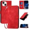 For iPhone 15 Leather Wallet Case Butterfly Flower Imprinted Phone Cover with Strap
